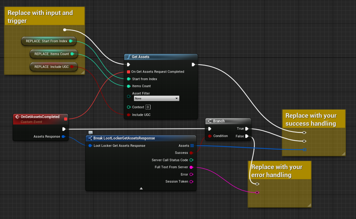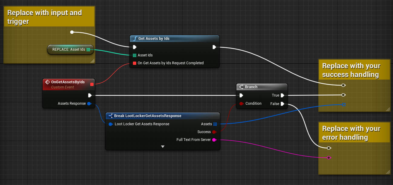 Debug.Log("Error retrieving assets");