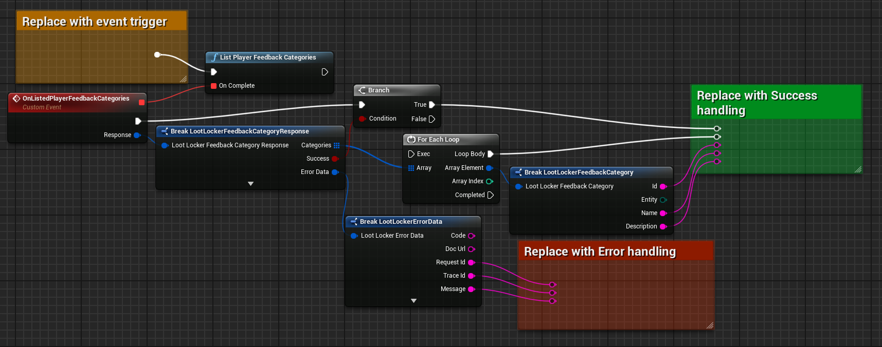 <figure><img src="https://534367586-files.gitbook.io/~/files/v0/b/gitbook-x-prod.appspot.com/o/spaces%2F-MVu1MPzezO-NgvC98xh%2Fuploads%2Fgit-blob-4651305f63b873bf81260e807b91a151aa3860b2%2Fue-bp-list-player-feedback-categories.png?alt=media" alt=""><figcaption><p><a href="https://blueprintue.com/blueprint/h1xst1-w/">Blueprint example of listing feedback categories for players</a></p></figcaption></figure>