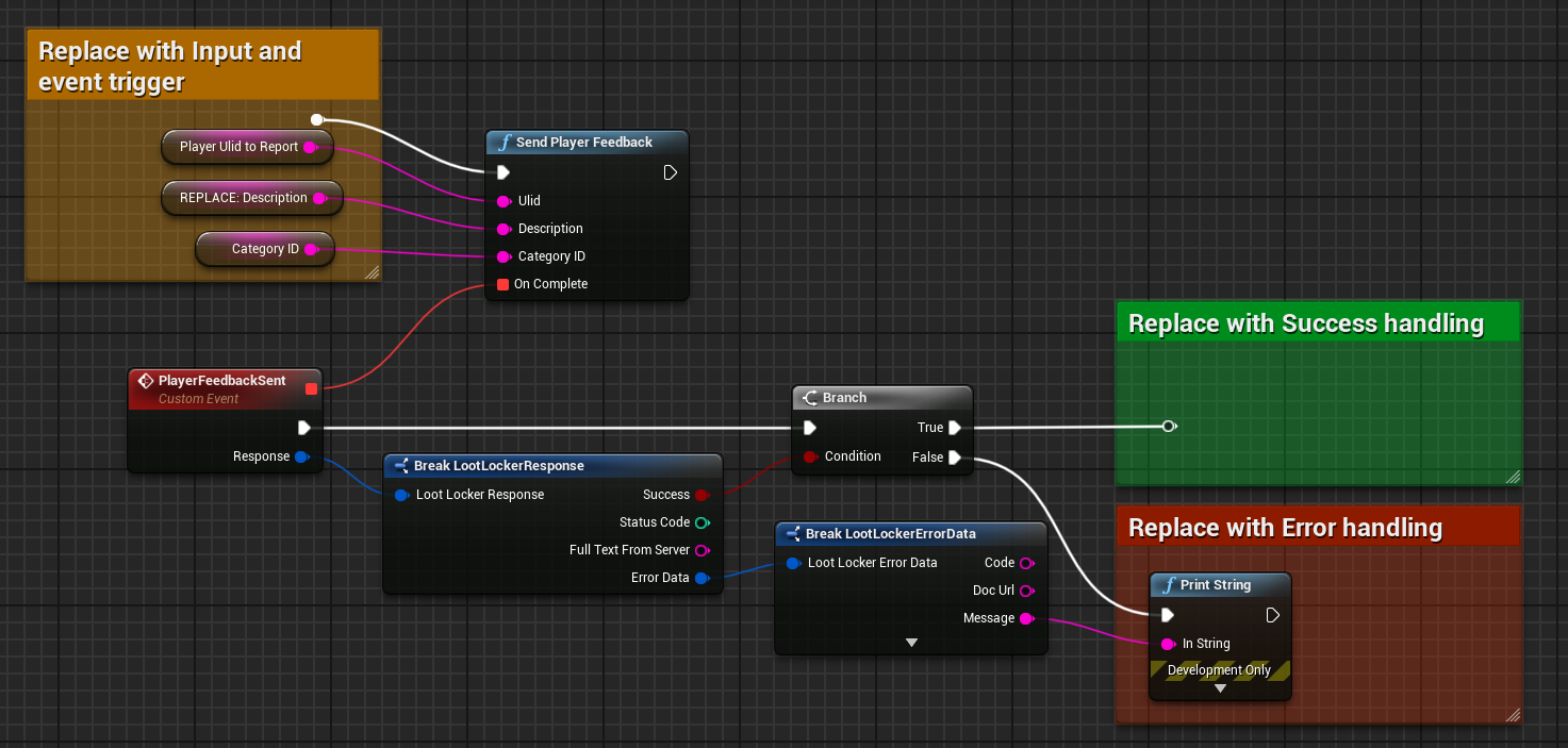 <figure><img src="https://534367586-files.gitbook.io/~/files/v0/b/gitbook-x-prod.appspot.com/o/spaces%2F-MVu1MPzezO-NgvC98xh%2Fuploads%2Fgit-blob-51fcf20d95235aa8171c2563628fe924f1a3d3fb%2Fue-bp-send-player-report-feedback.png?alt=media" alt=""><figcaption><p><a href="https://blueprintue.com/blueprint/stm5l3ki/">Blueprint example of reporting players</a></p></figcaption></figure>