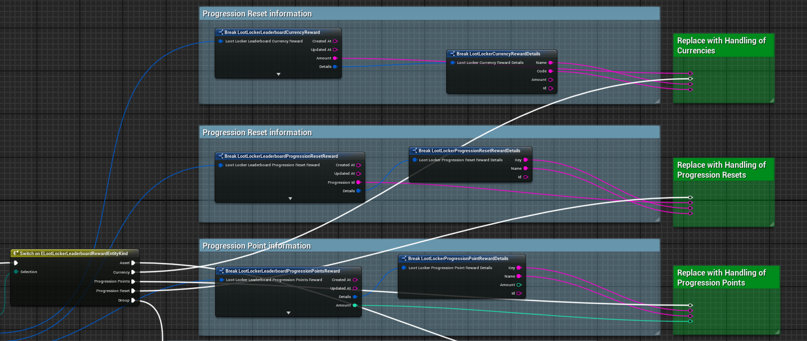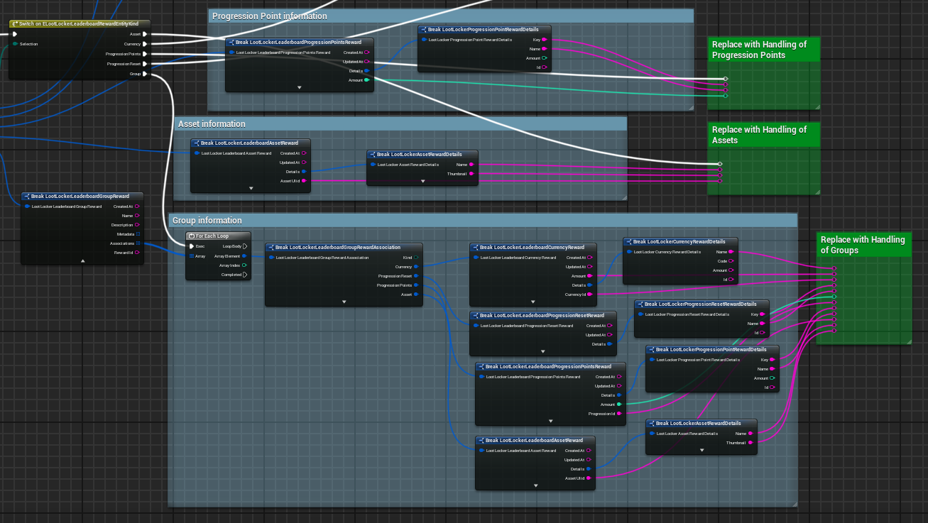 <figure><img src="https://534367586-files.gitbook.io/~/files/v0/b/gitbook-x-prod.appspot.com/o/spaces%2F-MVu1MPzezO-NgvC98xh%2Fuploads%2Fgit-blob-7ec4bf2460c21780879433ea6f26d049f3533912%2Funreal-bp-leaderboard-switch-reward-kind.png?alt=media" alt=""><figcaption><p><a href="https://blueprintue.com/blueprint/vqxt-roy/">Blueprint example of listing grouped rewards</a></p></figcaption></figure>