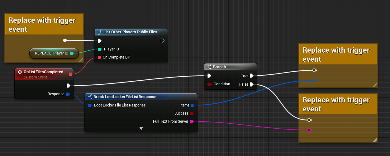 <figure><img src="https://534367586-files.gitbook.io/~/files/v0/b/gitbook-x-prod.appspot.com/o/spaces%2F-MVu1MPzezO-NgvC98xh%2Fuploads%2Fgit-blob-958a48c51d7557b737c6de8273b3ba3fe6ed8084%2FGet%20Other%20Players%20File?alt=media" alt=""><figcaption><p><a href="https://blueprintue.com/blueprint/k3hhzja1/">Blueprint example of retrieving all files from another player marked public</a></p></figcaption></figure>
