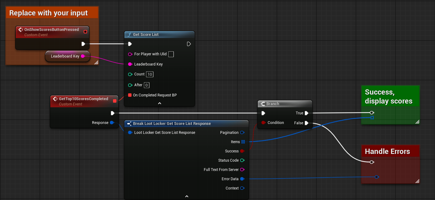 <figure><img src="https://534367586-files.gitbook.io/~/files/v0/b/gitbook-x-prod.appspot.com/o/spaces%2F-MVu1MPzezO-NgvC98xh%2Fuploads%2Fgit-blob-defd0ba91f54d8f767e52ccc2cf8ae98add4a212%2Funreal-blueprint-default-user-get-top-10-scores.png?alt=media" alt=""><figcaption><p><a href="https://blueprintue.com/blueprint/5qvhkjth/">Blueprint example of getting the top 10 scores using the default player</a></p></figcaption></figure>