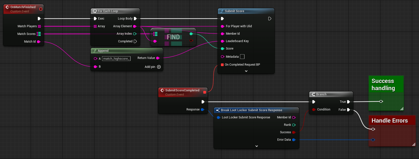 <figure><img src="https://534367586-files.gitbook.io/~/files/v0/b/gitbook-x-prod.appspot.com/o/spaces%2F-MVu1MPzezO-NgvC98xh%2Fuploads%2Fgit-blob-18d1a14be281df036c1aeafe3a65f2d723262566%2Funreal-blueprint-impersonated-score-submission.png?alt=media" alt=""><figcaption><p><a href="https://blueprintue.com/blueprint/x4e7i4y9">Blueprint illustrating token exchanged score submission on behalf of players on the game server</a></p></figcaption></figure>